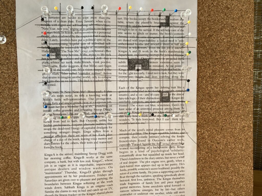 To distract me from the run, I decided to listen to my “Window” playlist. When I got to “Waving Through a Window” I started thinking about the window as a barrier between me and the world, which made me think of the grid on my visual poems as not only being about mapping and locating and connecting (as thread or string or line), but as net or a veil or a thing that blocks my immediate access to the word and the world. Yes! The grid as both offering connection and preventing it, or obscuring it, or weakening it.