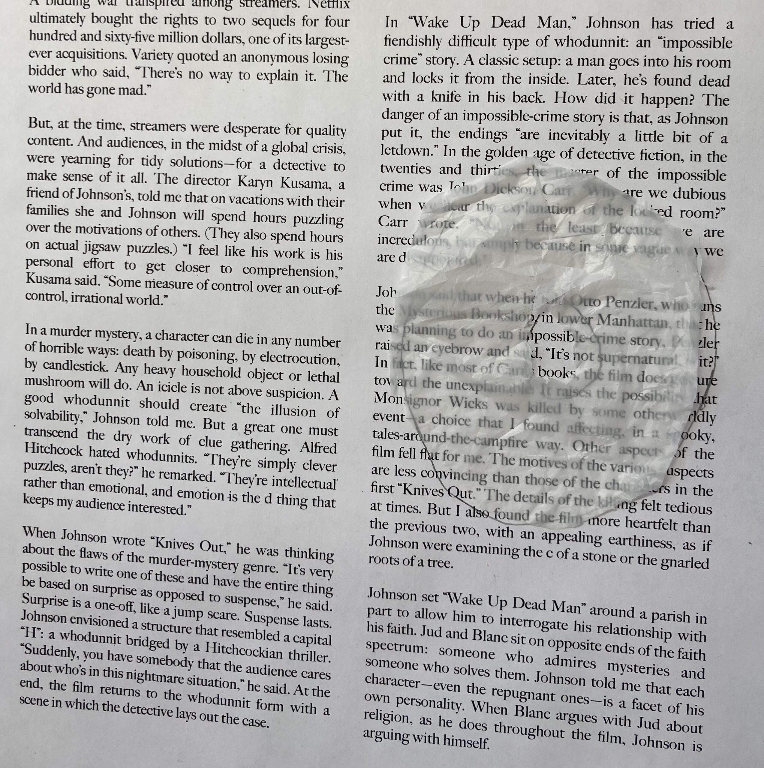 This material was difficult to cut and not as effective as the ziplock bag: effective = distorted, harder to read, creating a disconnection with the words